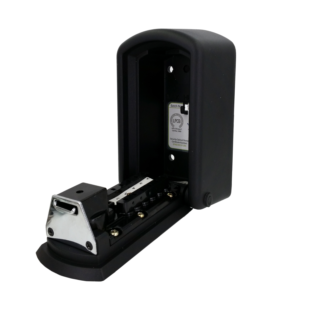 The Industrial Push Button Safe is a highly secure lock box approved and tested by police. It can have up to a 12 digit combo meaning there’s over 1 million codes! The box is all made steel and has a rubber cover to protect it from the weather.